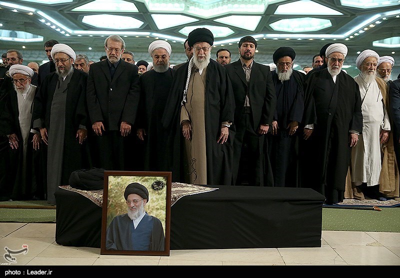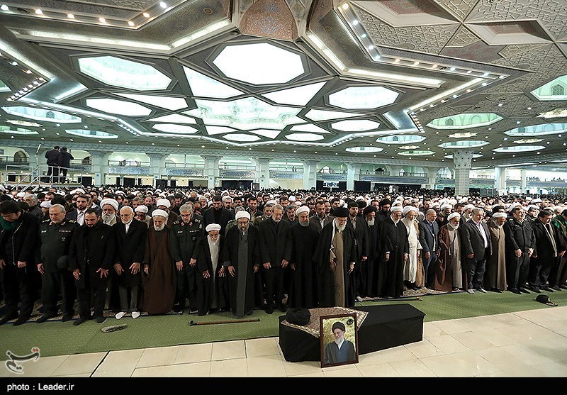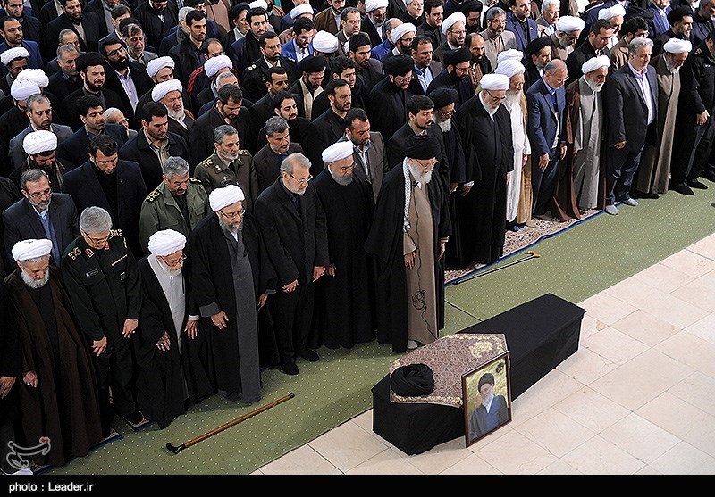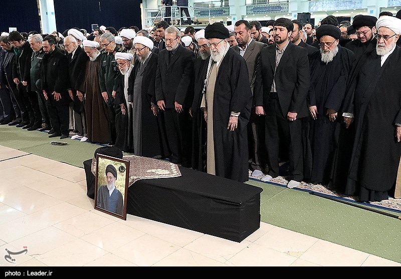 رهبر معظم انقلاب اسلامی با حضور در مصلی امام خمینی(ره) بر پیکر مرحوم آیتالله سیدمحمود هاشمی شاهرودی رئیس فقید مجمع تشخیص مصلحت نظام، نماز اقامه کردند.