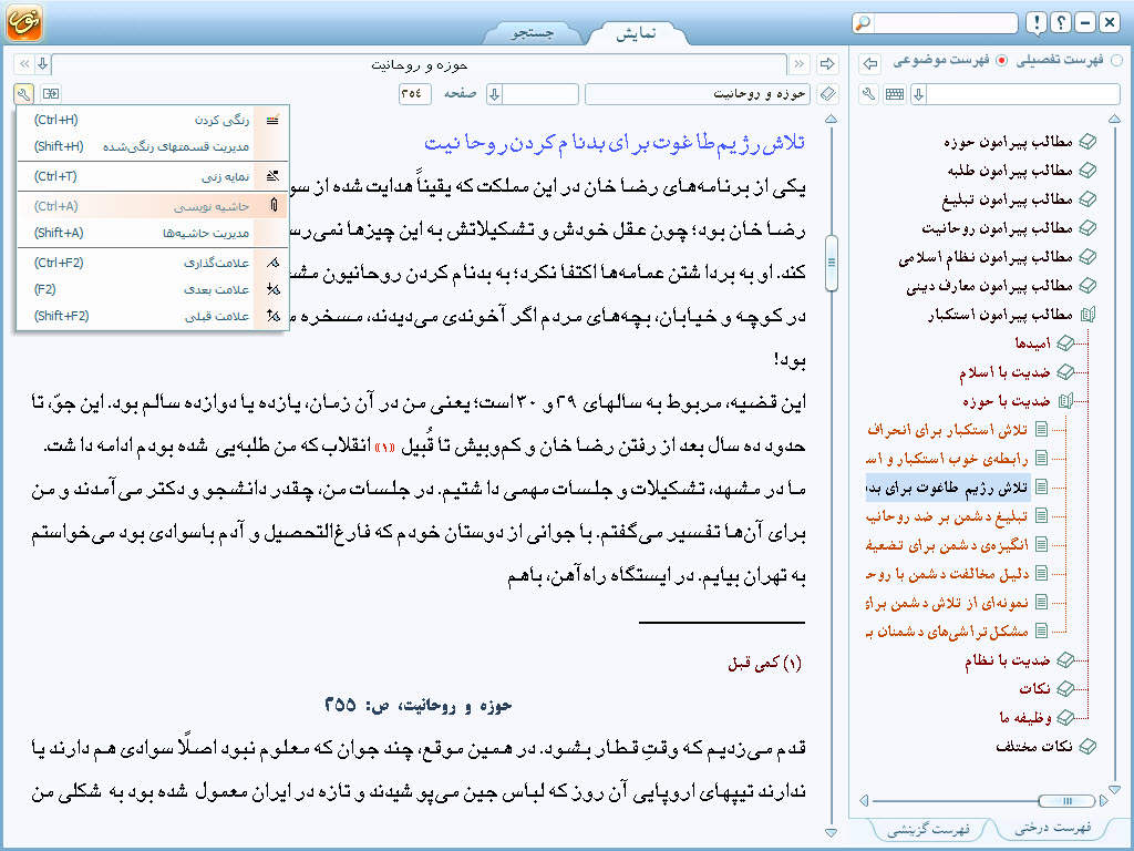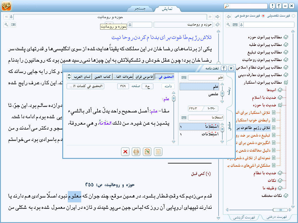 • امكان انتخاب فهرست درختی و گزینشی به همراه قابلیت تطبیق دوسویه متن و فهرست
