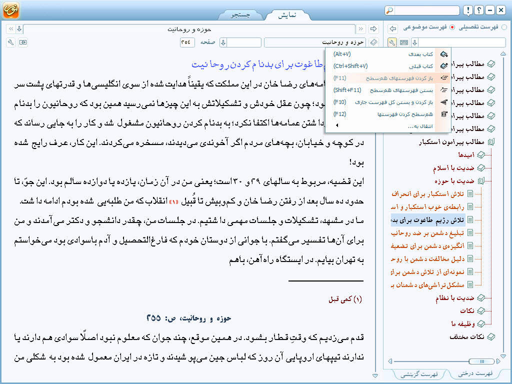 • امكان انتخاب فهرست درختی و گزینشی به همراه قابلیت تطبیق دوسویه متن و فهرست